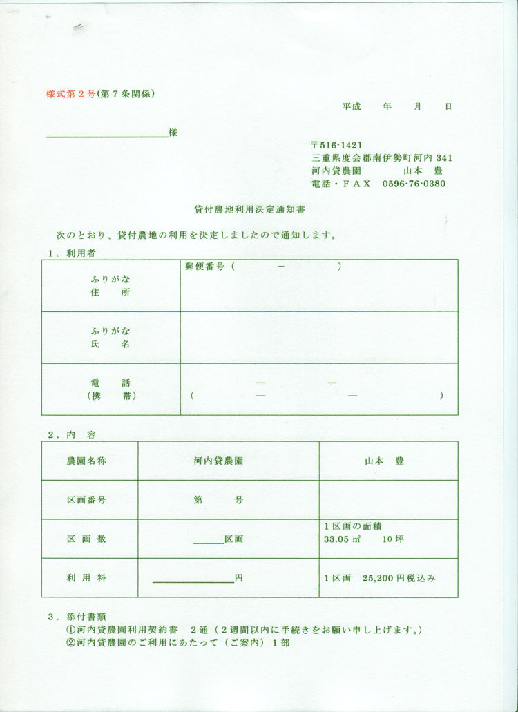 当貸農園は「特定農地貸付けに関する農地法等の特例に関する法律」に基づき、所管町である南伊勢町との協定書の締結及南伊勢町農業委員会の承認を経て、南伊勢地域振興会の協力を得ながら農林業の振興と発展を図る事業の一環として運営しています。